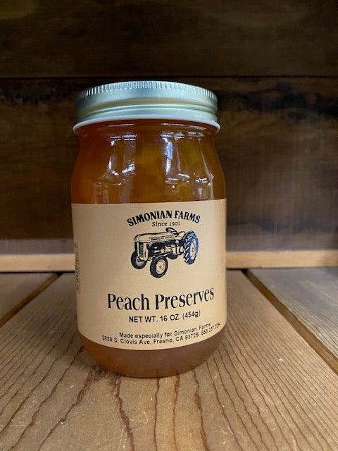 Capture the essence of summer with our Peach Preserves: ripe California peaches, gently cooked to maintain texture and flavor, then jarred to share that fresh‑from‑the‑orchard taste year‑round. Spread on biscuits, pair with soft cheeses or swirl into dessert. Simonian Farms brings orchard freshness straight to your table.